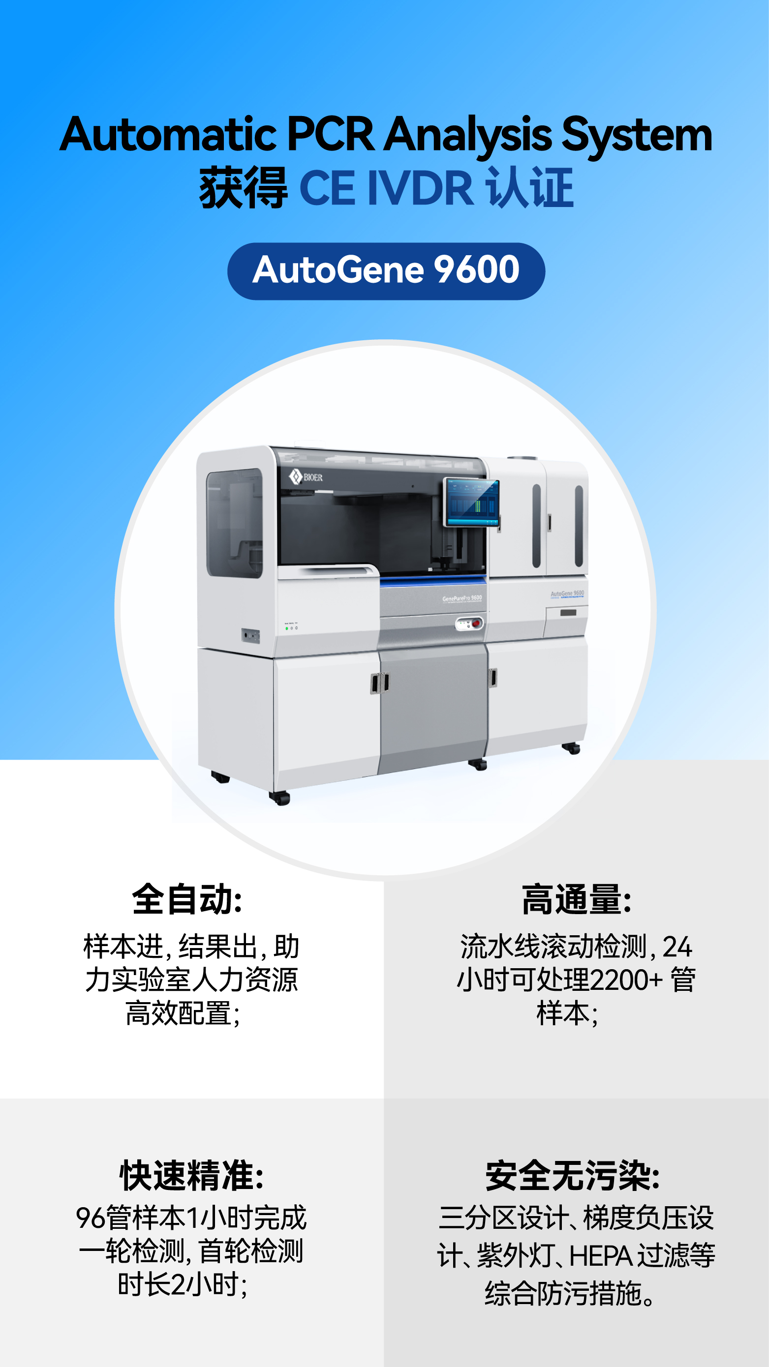 • 滿足PCR檢測自動化、一體化的實驗分析系統